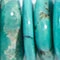 Handcrafted by Native American artisans, this stunning necklace is made of a single strand of turquoise stones and is finished with a sterling silver hook and eye closure.