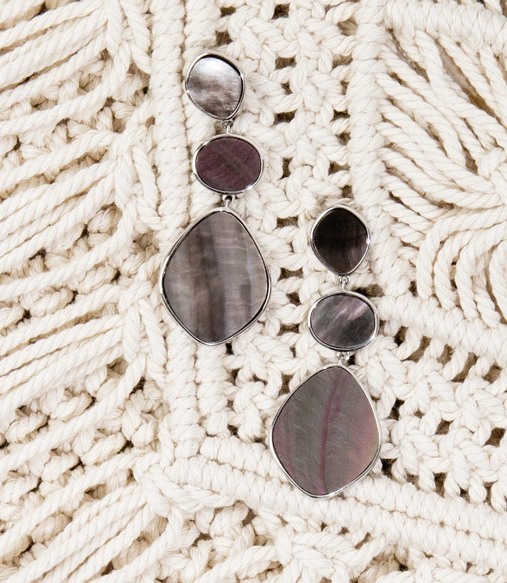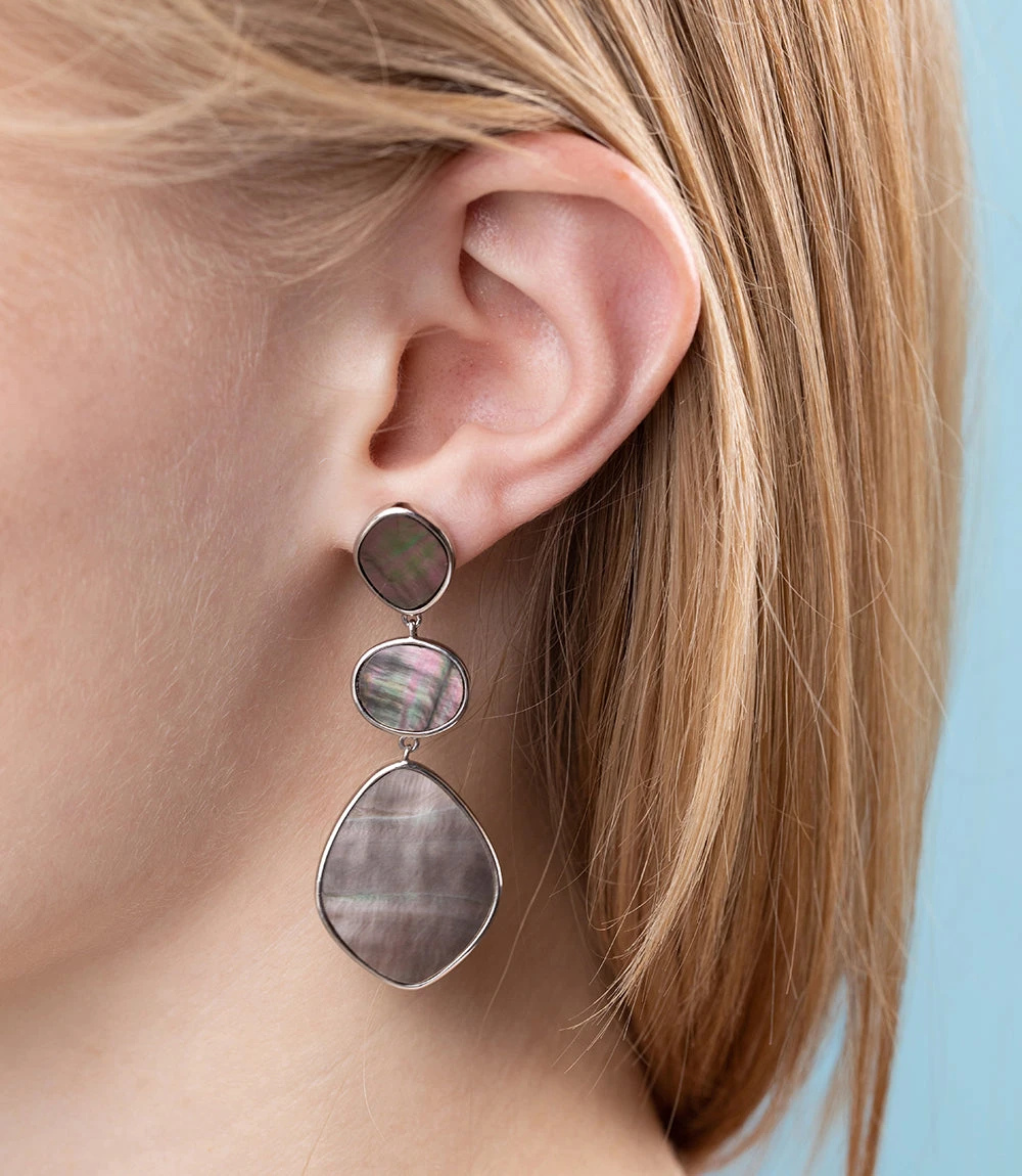 Make a statement with these elegant tier drop earrings in shimmering mother of pearl, set in sterling silver. Each piece is handcrafted to bring out the natural artistry of its particular stone.