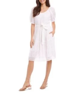 - Allover embroidery with eyelet detail