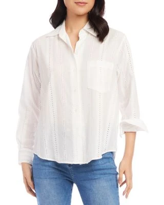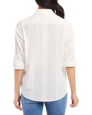 - Embroidered stripes with eyelet detail