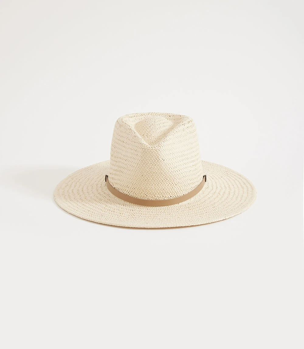 A timeless woven straw hat is detailed with a pinched brim and a contrasting band for a clean finish.