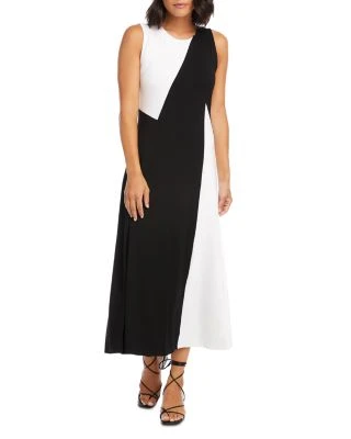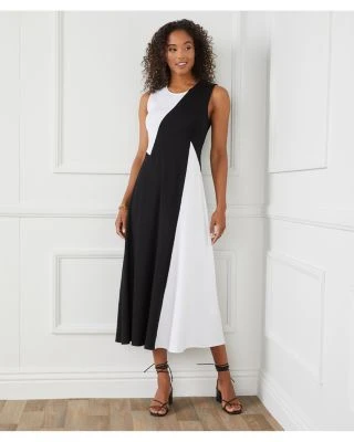 - Dynamically contrasting panels give this figure-flattering dress an edgy, modern look