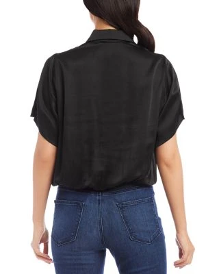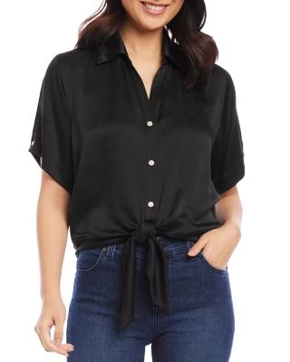 - Self-ties at front hem