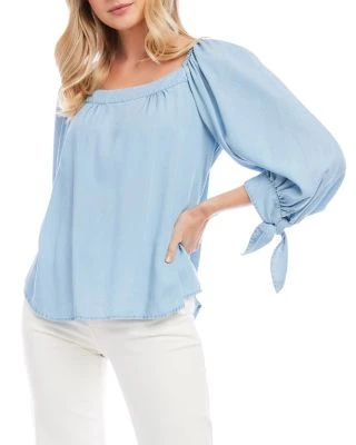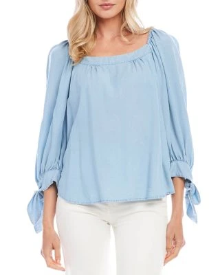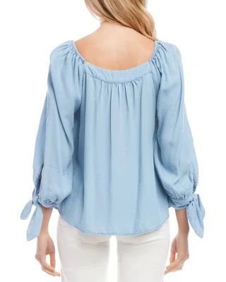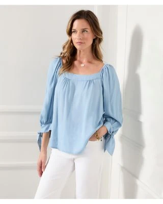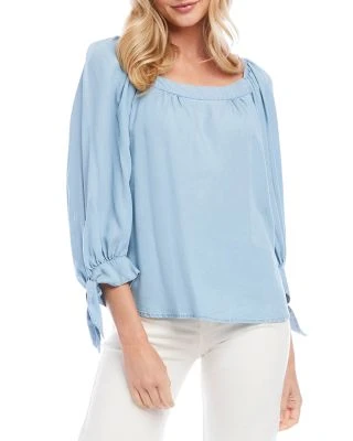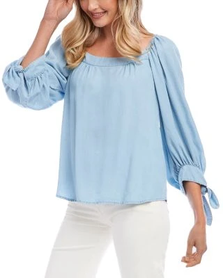- Three-quarter length puff sleeves, shirred shoulders