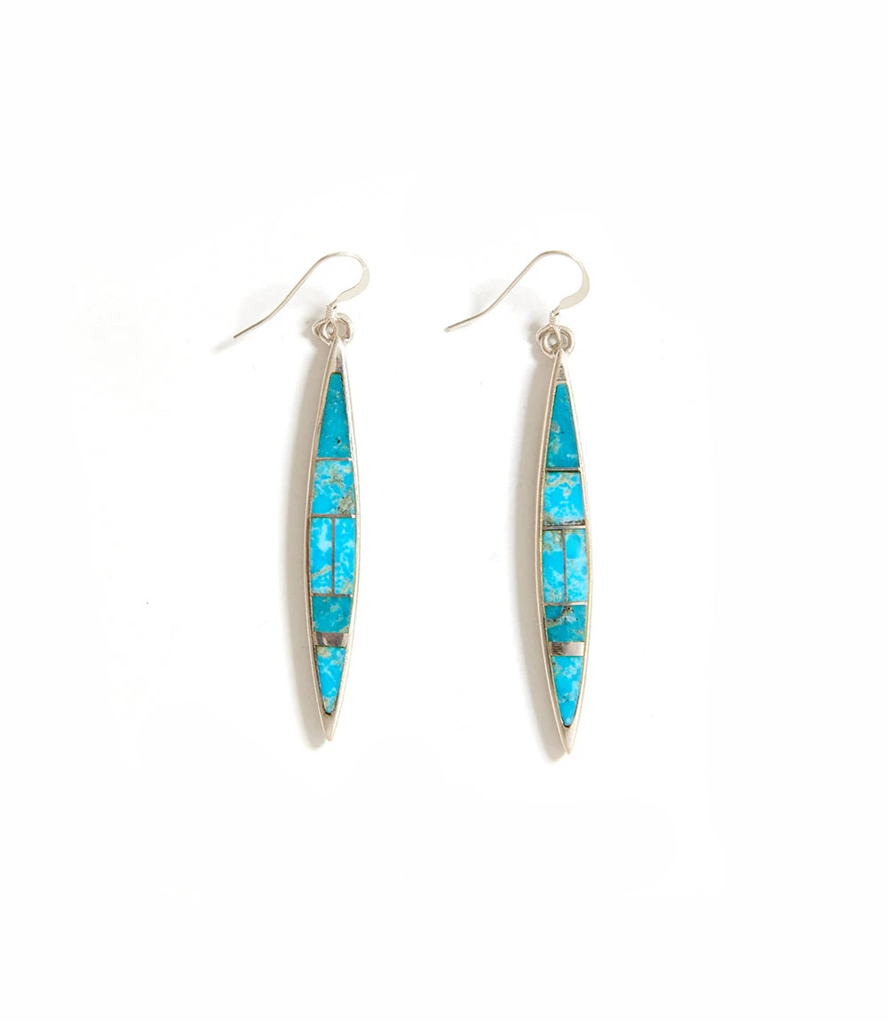 Mesmerizing turquoise stones center on a pair of statement-making dangle earrings.